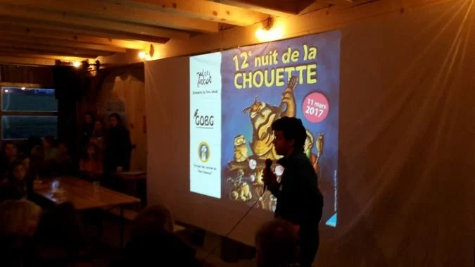 La 12 ème Nuit de la chouette s’est déroulée le 11 mars à Soral. Organisée par le Groupe Ornithologique du Bassin Genevois (GOBG) avec le soutien précieux du Groupe des Jeunes de Nos Oiseaux (GDJ), cette soirée a accueilli pas moins de 100 personnes ! Merci aux 18 bénévoles qui se sont investi pour cette soirée. Qui dit belle soirée, dit lieu accueillant et cette année c’est la Brasserie du Père Jakob qui nous a accueiili dans ses locaux pour l’événement.