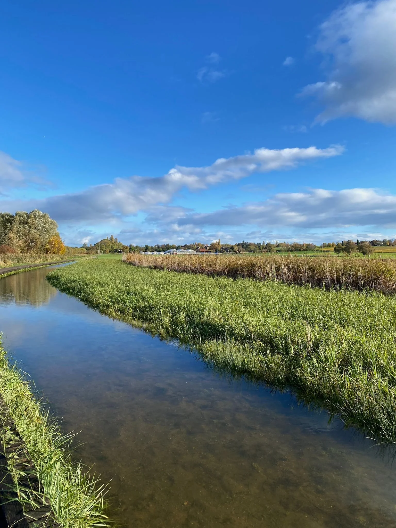 Nous longeons “notre” rivière genevoise et apercevons quelques Pinsons des arbres et un Merle noir qui disparaît dans le talus. Sur une zone nue, la pluie a rempli une petite dépression. Autour de cette mare, une élégante Bergeronnette des ruisseaux semble vouloir se faire la plus légère possible, tant la boue y est tenace. Nous l’observons quelques instants avant qu’elle ne s’envole à travers champs, rejoignant un autre individu, que nous aurons l’occasion de bien admirer.