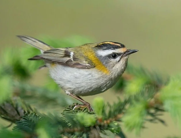 A l’arrivée, il est difficile de nommer l’oiseau du jour, mais finalement ce sera le Roitelet triple-bandeau, sans doute pour l’avoir vu de très près, de si près d’ailleurs que nous avons pu admirer ses trois bandeaux !