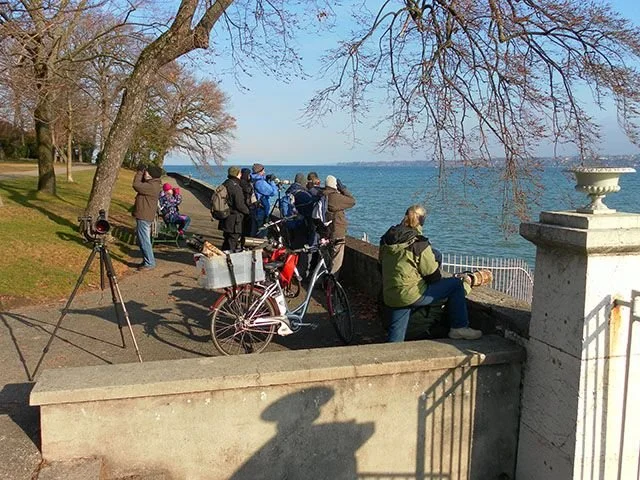 Pour la première sortie depuis sa création, nous avons organisé une promenade entre la jetée des Pâquis et la Perle du lac. C’est donc à 10h le dimanche matin que nous nous sommes retrouvés. Onze personnes ont répondu présent et le temps était beau bien que très froid. Après un rapide passage sur la jetée des Pâquis, nous nous sommes déplacés vers le port des Pâquis pour observer les Fuligules morillons et milouins ainsi qu’un couple de Nette rousse. Nous avons ensuite poursuivi la sortie en direction du quai Wilson et de la Perle du lac. Plusieurs groupes de Garrots à œil d’or, Grèbes à cou noir, Canards chipeau et autres Goélands se sont bien laissés observer. Nous avons terminé la sortie aux environs de 13h30 à la Perle du lac et avons prolongé avec quelques personnes du côté du port des Eaux-Vives où nous avons vu des Fuligules nyroca de très près ainsi qu’un Chevalier guignette. Nous nous sommes séparés à 14h30. Merci à tous les participants pour leur présence et pour l’intérêt apporté aux explications!